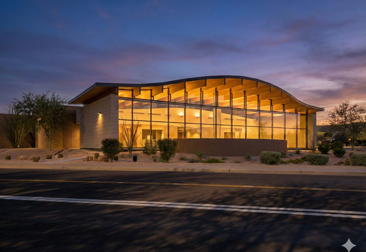 During initial site investigations it was determined that current retention requirements for the site had been reduced and the new addition could occupy a portion of an existing retention basin fronting the street. The project capitalizes on that prominent corner location, establishing a distinctive and open presence in front of the original building’s blank rear wall. The new structure connects through an existing opening and maintains existing building separations and exiting. Construction required almost no demolition, allowing the eye center to continue operations for the duration of construction.